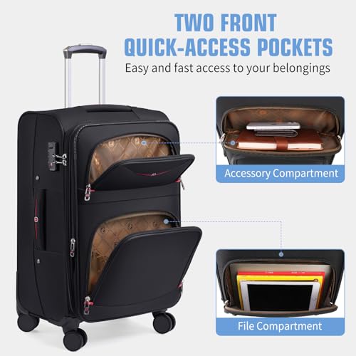 • EXPANDABILITY: The hidden expandable space design of this luggage can increase the expansion capacity by about 20% after expansion, which is equivalent to increasing the capacity of a backpack. With this luggage you can carry anything with ease
