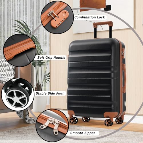 HOT ! Campfun 6 Piece Luggage Sets, ABS Hardshell Suitcase Set with Double Spinner Wheels, Durable Lightweight Carry On Luggage for Travel & Business, 12/14/16/20/24/28 inch, Black