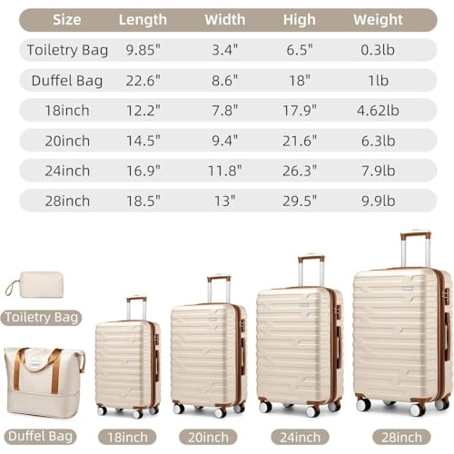 Luggage Sets 6 Piece with Duffel Bags, Hardside Expandable Suitcases with Spinner Wheels TSA Lock (Cream+Brown + ABS) 5