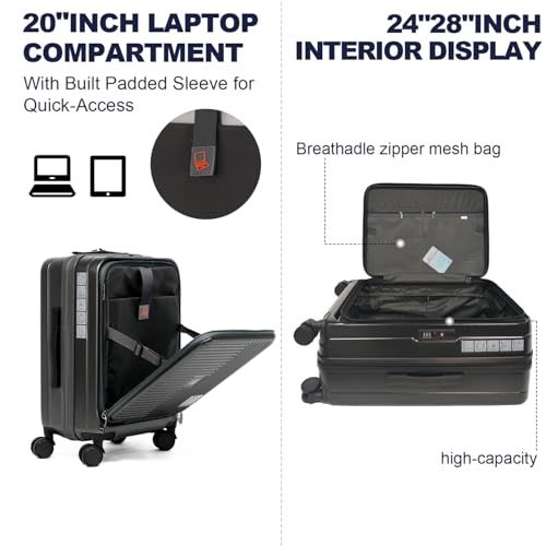Luggage Set, 3-Piece TSA Approved, Hardshell Suitcases with Front-Opening Design, Black (20", 24", 28") 6