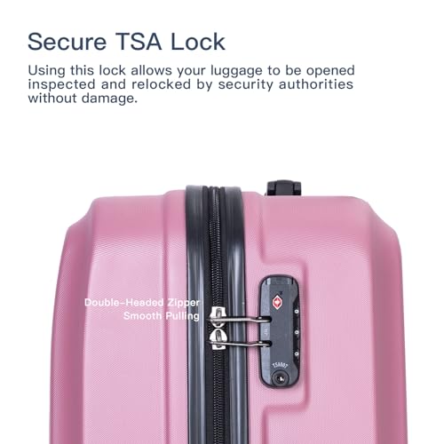 More information about 3 Piece Luggage Sets ABS Lightweight Suitcase with Two Hooks, Spinner Wheels, TSA Lock, (20/24/28, Pink)