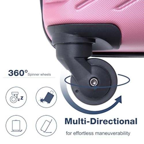 3 Piece Luggage Sets ABS Lightweight Suitcase with Two Hooks, Spinner Wheels, TSA Lock, (20/24/28, Pink) 3