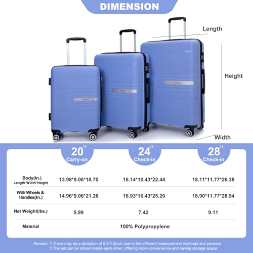 3 Pieces of Luggage, Suitcase, Luggage Set, Trolley, Travel Case, with Spinner Wheels, Combination Lock, 20/24/28 Inches,Purplish Blue 7