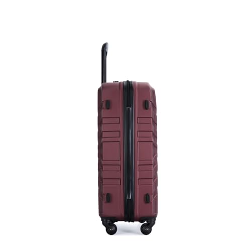 HOT ! 3 Piece Luggage Sets ABS Lightweight Suitcase with Two Hooks, Spinner Wheels, TSA Lock, (20/24/28) Wine Red
