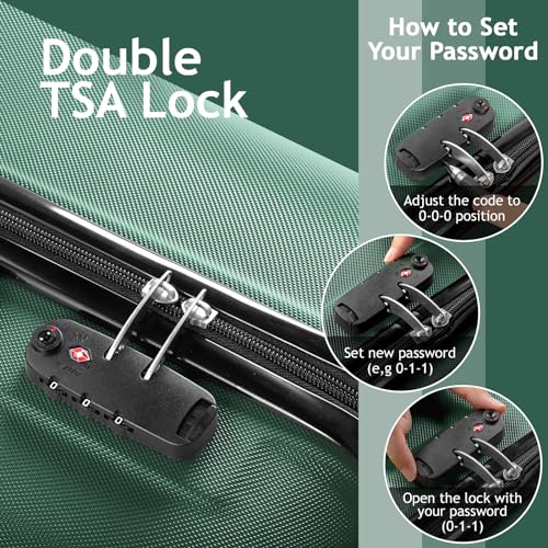 More information about Luggage Suitcase Luggage 4 Piece Set Suitcase Lightweight,16in 20in 24in 28in Carry On Suitcases, Luggage Set with Wheels - Retro Green