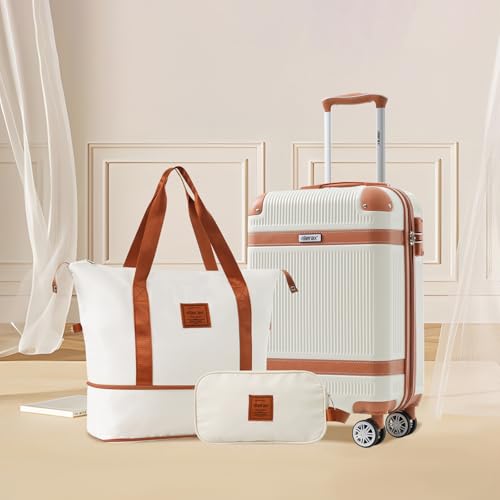 HOT ! Merax Luggage Set 3 Piece Suitcase Set, 20-Inch Carry On Luggage Lightweight Suitcases with Wheels, TSA Lock, Collision-Protection Angle (White)