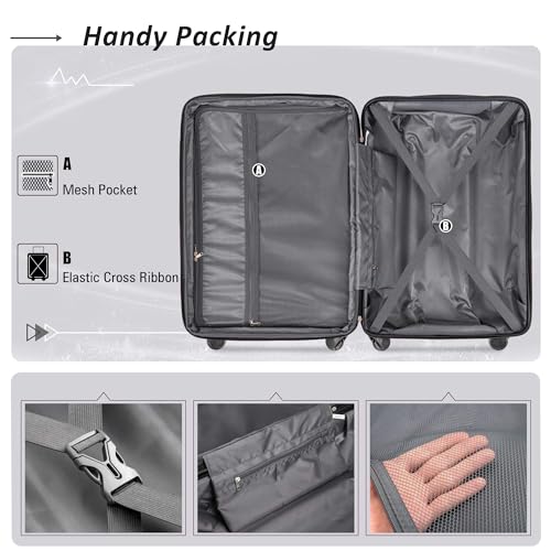 • [Spacious & Organized Packing] The Medium size(24inch) suitcase features a built-in expandable feature, allowing you to increase packing space by 25%. The luggage interior also features elastic cross over straps and mesh pockets for easy organization.