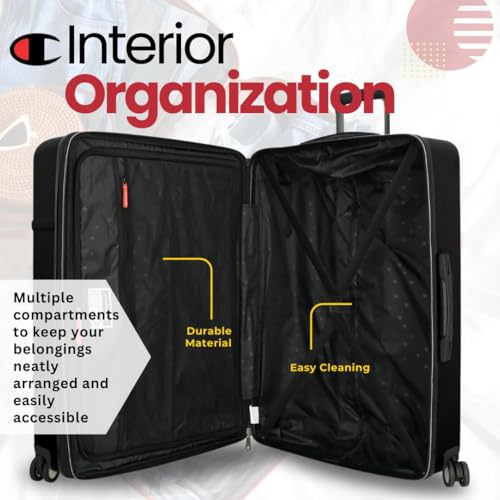 More information about Champion 3-Piece Luggage Set - 21” 25” 29” Hardshell Suitcases with 8 Spinner Wheels - Expandable Carry-On & Checked Luggage - Durable ABS Material - Travel Bags - Airline Approved - True Black