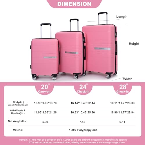 Hardshell Suitcase Double Spinner Wheels Luggage Sets Lightweight Durable Suitcase with TSA Lock,3-Piece Set (20/24/28), Pink 7