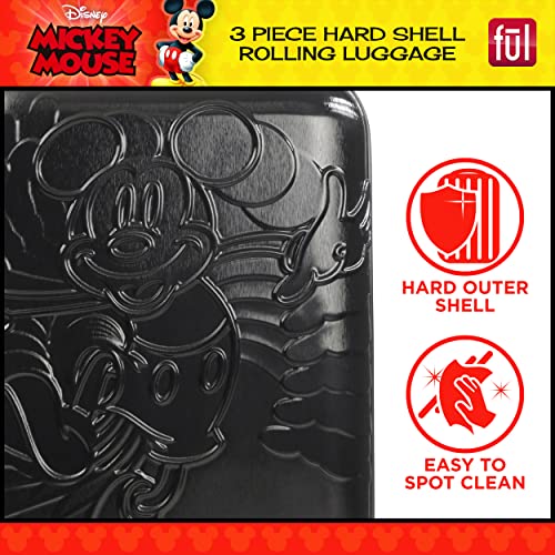 FUL Disney Mickey Mouse Rolling Luggage, Molded Hardshell Suitcase with Wheels, Black, 3 Piece Set 3