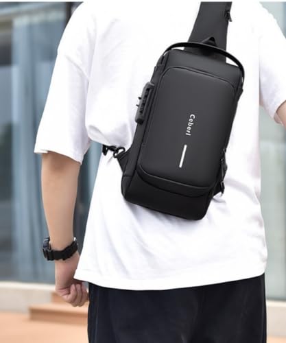 HOT ! Crossbody Anti-Theft Sling Bag for Men Women,Casual Shoulder Backpack Waterproof Chest Daypack with USB Charging Hole (Black)