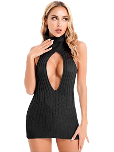 More information about Linjinx Women's Hollow Out Pullover Sweater Dress Open Chest Turtleneck Knitwear Backless Dress