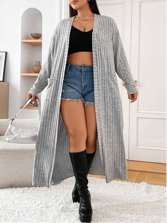 • STYLE: Elegant long cardigan sweater featuring a ribbed knit pattern and open front design for versatile layering options