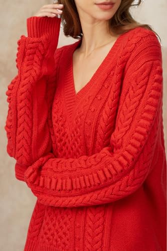 HOT ! Jason Wu Rent The Runway Pre-Loved Red Cableknit Wool Sweater