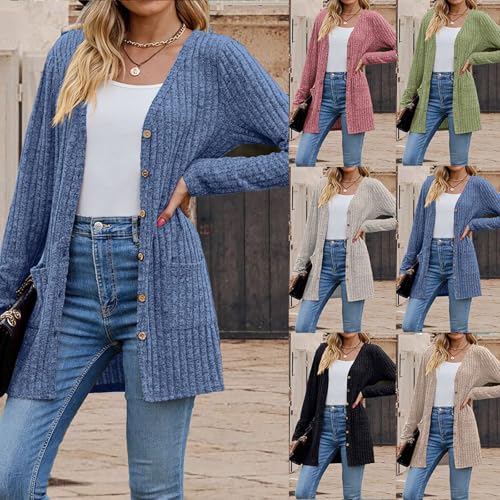 HOT ! GaoCold Women's Fashion Cardigan Long Sleeve Button Knitted Cardigan Sweater Fall Long Casual Outfits with Pockets