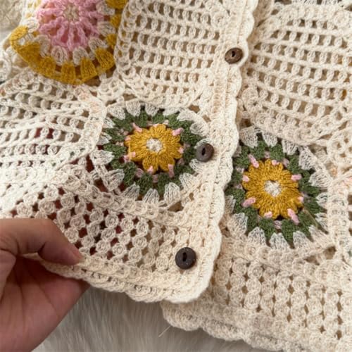 More information about Women Square Neck Button-Up Crochet Top Short Sleeve Knit Crop Cardigan Fairycore Summer Casual Daily Outfit Blouse