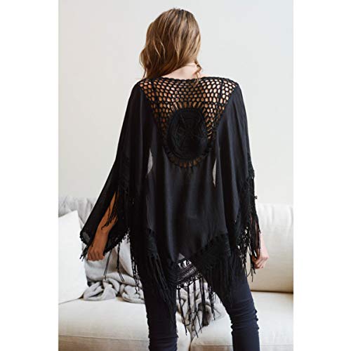 Womens Floral Crochet Lace Beach Swimsuit Medallion Tassel Kimono Cardigan 5