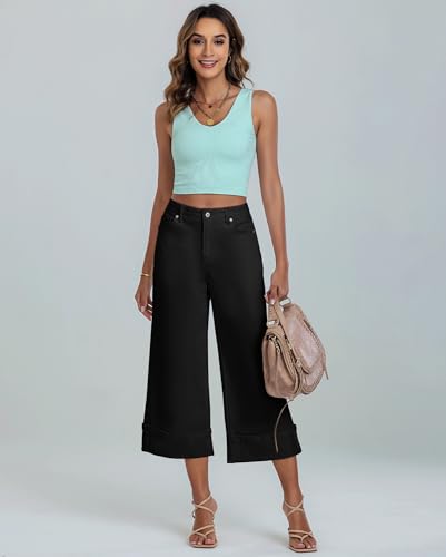 HOT ! LookbookStore Capris Jeans for Women Wide Leg High Waisted Casual Summer Roll Hem Cropped Stretch Denim Jean Capri Pants