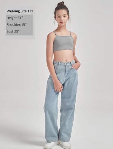 EXARUS 5/7 Pack Girls Padded/Unpadded Tank Tops Cropped/Full Length Stretchy Sleeveless Spaghetti Straps Cami Top 5