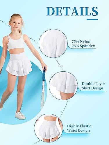 • HIGH QUALITY MATERIALS: Girls tennis skirt is made of 75% nylon, 25% spandex quick-drying fabric that is comfortable and breathable, helping to wick away sweat and keep kids dry, providing a great sports experience.