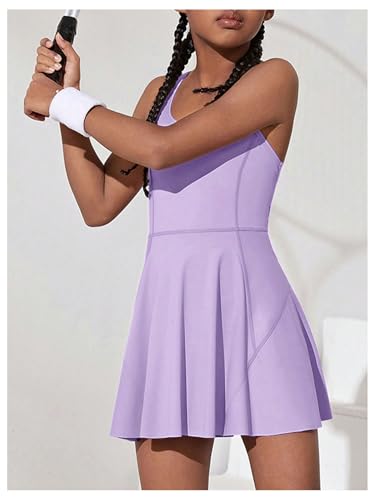 HOT ! Girl's Sleeveless Pleated Golf Tennis Dress with Built in Shorts and Pocket Scoop Neck Athletic Active Dresses