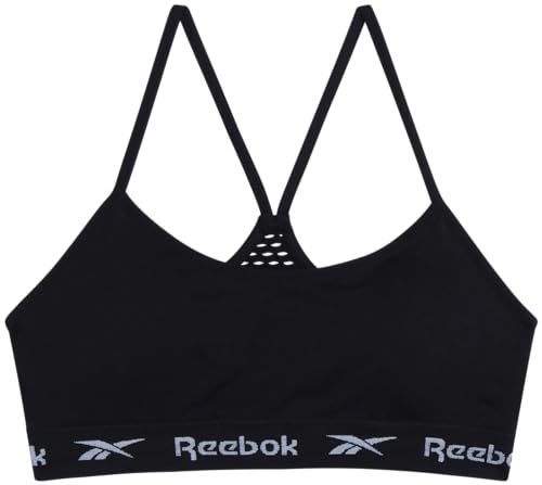 HOT ! Reebok Girls Training Bra - 2 Pack Racerback Crop Cami Bralette with Removable Pads - Soft Seamless Bras for Teens (6-16)