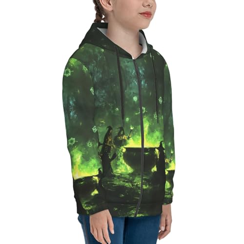 Hoodies for Teen - Zip Up Hoodies & Sweatshirts, Halloween Green Forest Witch Youth Pullover Clothes Size 3
