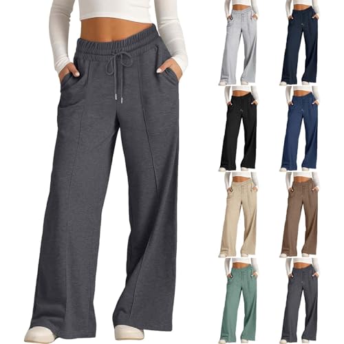 HOT ! Kids Girls Straight Wide Leg Sweatpants High Waisted Baggy Pants Teen Elastic Waist Loose Fit Trousers with Pockets