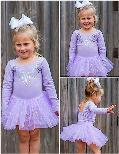 Zaclotre Kid Girls Long Sleeve Leotards Ballet Dance Sparkly Tutu Dress Ballerina Outfits 6