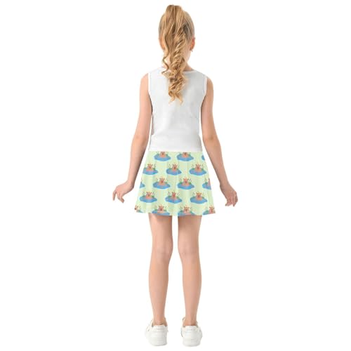 Girls Skorts High Waist Athletic Skirts with Shorts Cute Hippos Stretchy Teens Performance Tennis 6