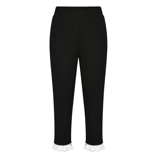 Girls Lace Trim Capri Leggings Stretchy High Waisted Yoga Cropped Cute Summer Lightweight Dance Tights 2-13Y 7