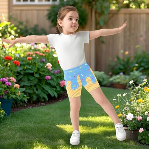 Blue Ice Cream Girls Shorts Size 8 Elastic Cotton Girls Running Biker Shorts Dance Tumbling Athletic Gymnastics Yoga Pants for Kids 4