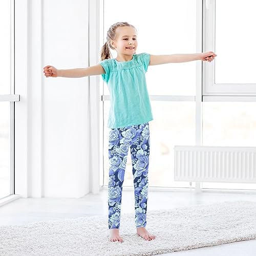 Blue Rose Flower Pattern Floral Plant Girls Leggings Dance Running Workout Yoga Pants 6