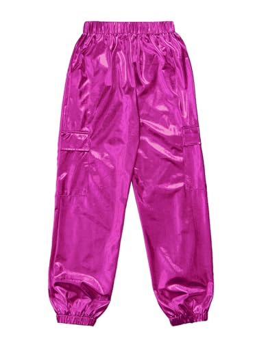 HOT ! FEESHOW Metallic Cargo Pants for Girls Boys Hip Hop Dance Multi-Pocket Active Joggers Pants Sweatpants