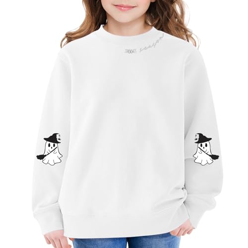 Teen Girls Pullover Sweatshirts Halloween Ghost Graphic Long Sleeve Crew Neck Tops Clothes Kids Cotton Warm Fall 6