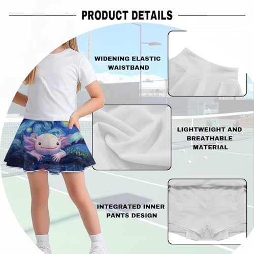 • Built-in Shorts Liner and Pockets: Our novel skirts are designed with fake two-piece design, two-in-one shorts design, high waistline wrinkled skort exterior, showing the youthful style, while the built-in shorts lining allows your child to enjoy the movement without leaking, elasticized textured waistband, providing your child with a more comfortable wearing experience, the waist of the hidden pockets, but also to provide convenience