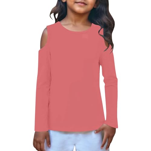 More information about Girls Shirts Trendy 2025 Round Neck Off Shoulder Long Sleeves Cute Tees Shirt Casual Comfy Soft Solid Blouse Tops