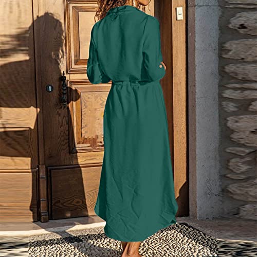 Ladies Long Sleeve Dress Dress for Women Turtle Neck Linen Beach Hawaiian Shirt Cardigan Maxi Long Dress 2025 7