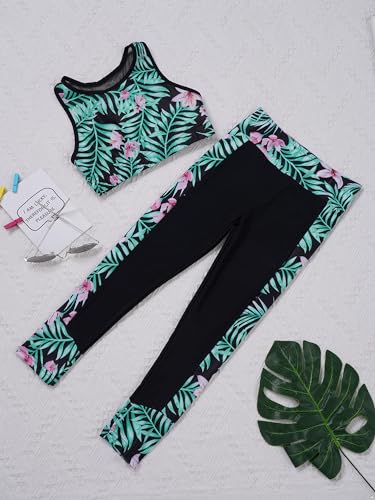 Kids Girls Gymnastics Outfit Tracksuit Cutout Back Crop Tank Sport Bra with Yoga Leggings Compression Tights Sets 6