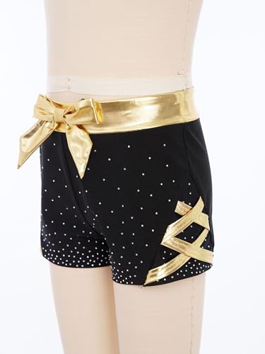 Jugaoge Girls Rhinestones Bowknot Dance Shorts High Waist Stretchy Gymnastics Yoga Booty Shorts Dancewear 6