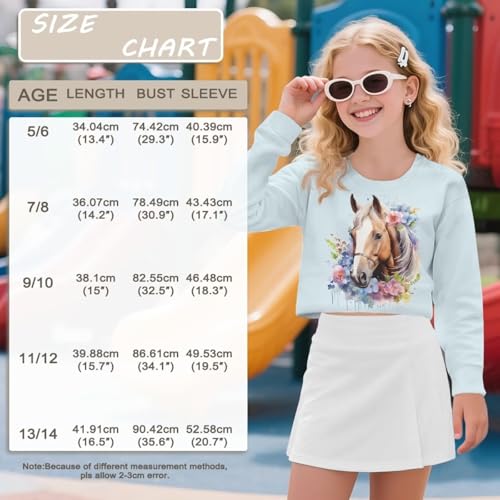 • Size Tip: This long sleeve shirts for girls is suitable for girls aged 5 to 14. Please refer to the size guide carefully before purchasing. This sweatshirt may be a bit short, so you should choose the appropriate size according to its length