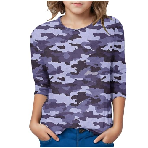 3/4 Length Sleeve Tops Kids Girl Camo Shirt Printed Crew Neck T Shirts Loose Three Quarter Casual Dressy Blouses 6