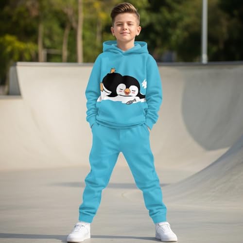 • Features: Boys Girls 2 piece outfits with vibrant color. Include a long-sleeved hooded sweatshirt and sports sweatpants. kangaroo pocket, stretch elastic waist pants with side pockets, loose fit and casual
