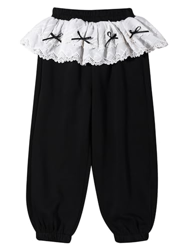Aislor Kids Girls Y2K Bowknot Lace Peplum Pants Elastic Waist Sweatpants Casual Athletic Trousers with Pockets 6