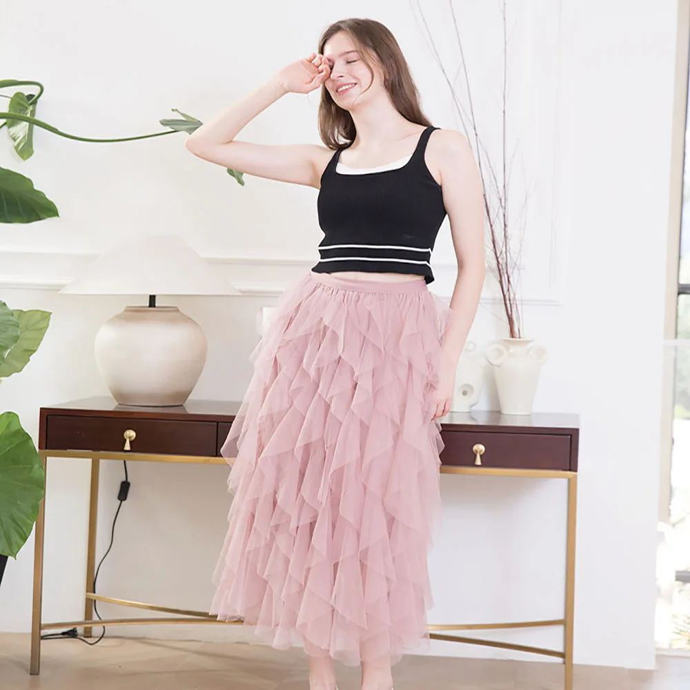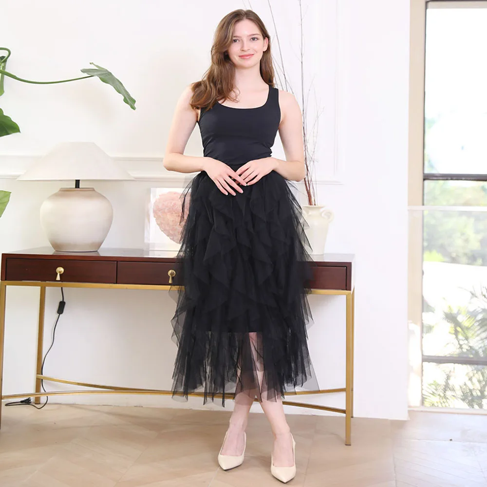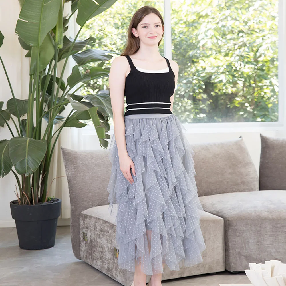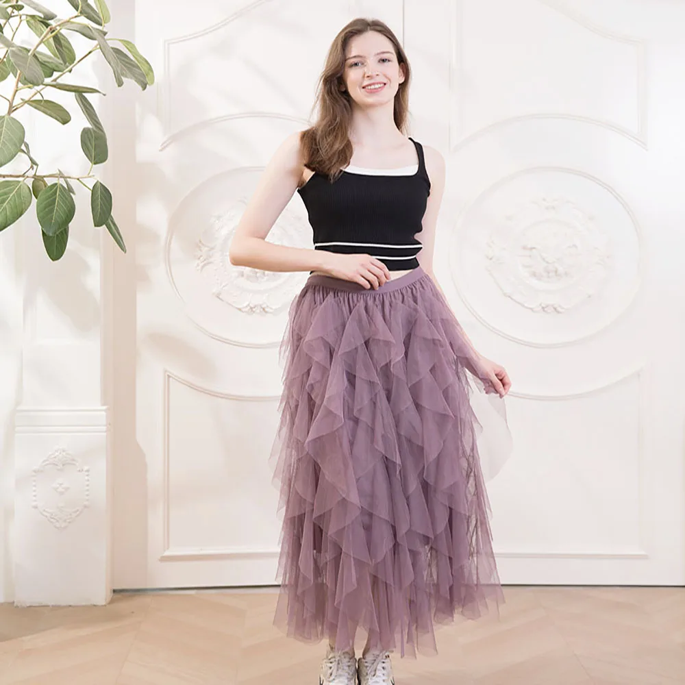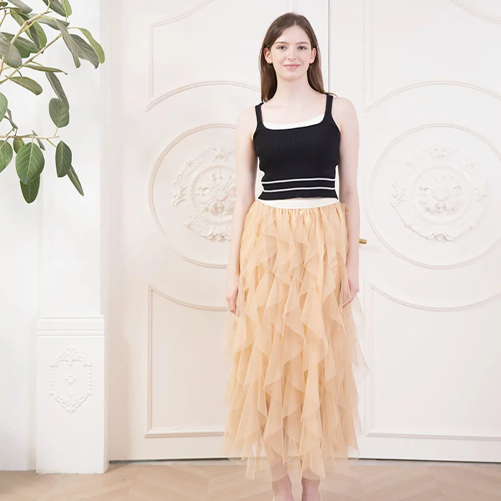 Plus-size cake skirt mesh flounder Instagram super hot skirt tutu skirt Female A-line long fairy skirt gauze women's skirt