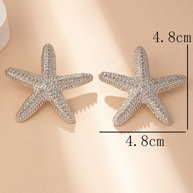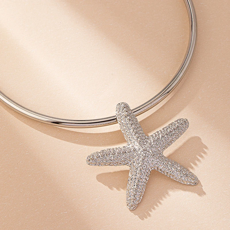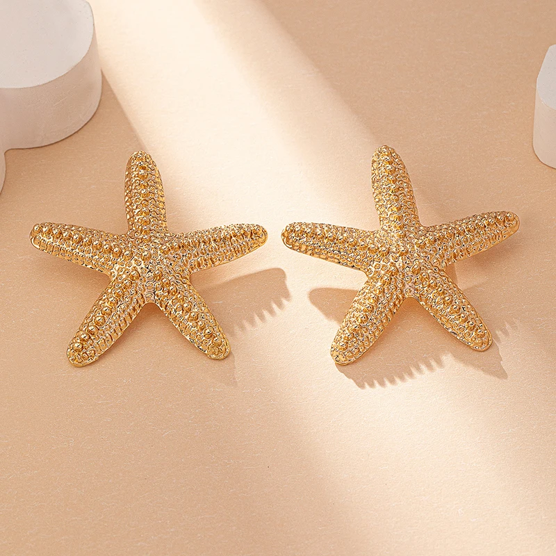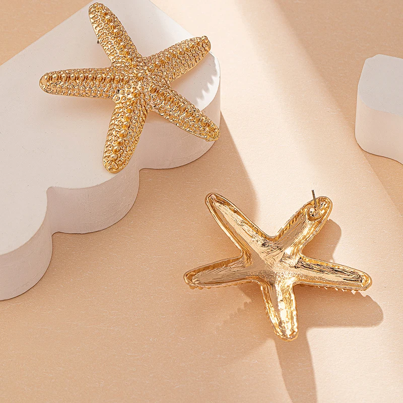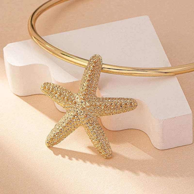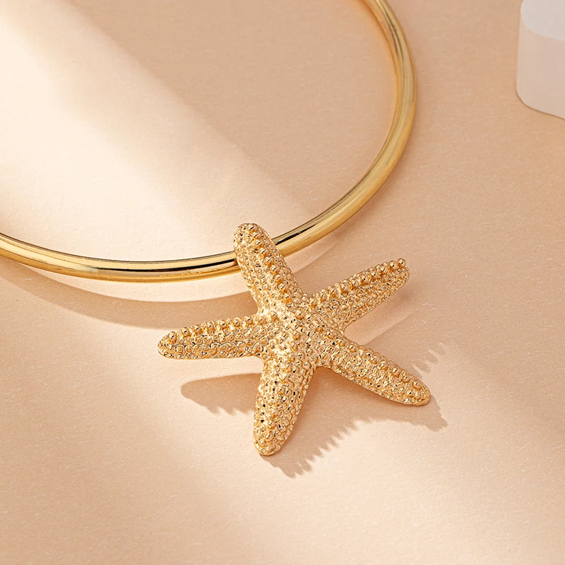 Modern Jewelry Accessories Gold Color Metal Statement Earrings and Adjustable Neck Choker Starfish Pendant Necklace for Women