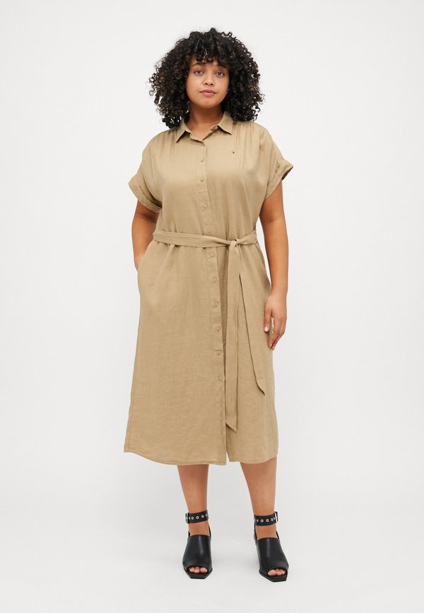 HOT ! BELTED MIDI DRESS - Shirt dress - camel