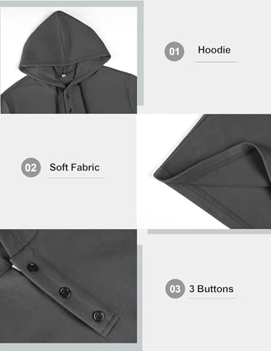 Vssjavun Mens Hoodie Pullover Long Sleeve Casual Henley Shirts Slim Fit Hooded Athletic Shirt with Drawstring 3