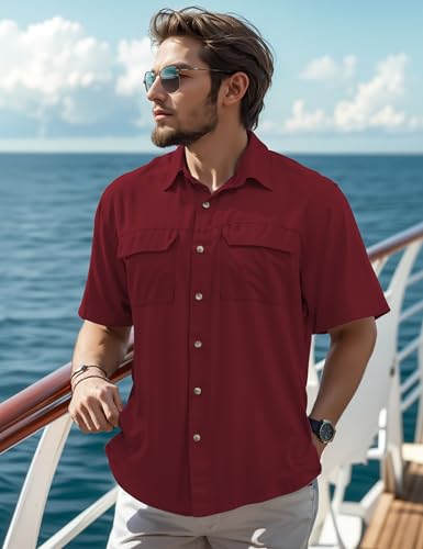 • [Wrinkle-Free & Stain-Resistant Fabric] Designed for convenience, this shirt features soft, stretchable fabric that resists wrinkles and stains—making it easy to pack, wear, and wash. Whether you're hiking, fishing, or traveling, it keeps you looking sharp with minimal effort.