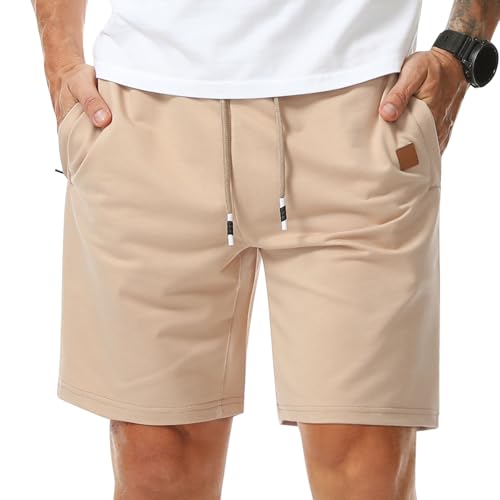 Surenow Men's Jogger Shorts Athletic Workout Shorts Drawstring Casual Lightweight Short for Men with Zipper Pockets 7
